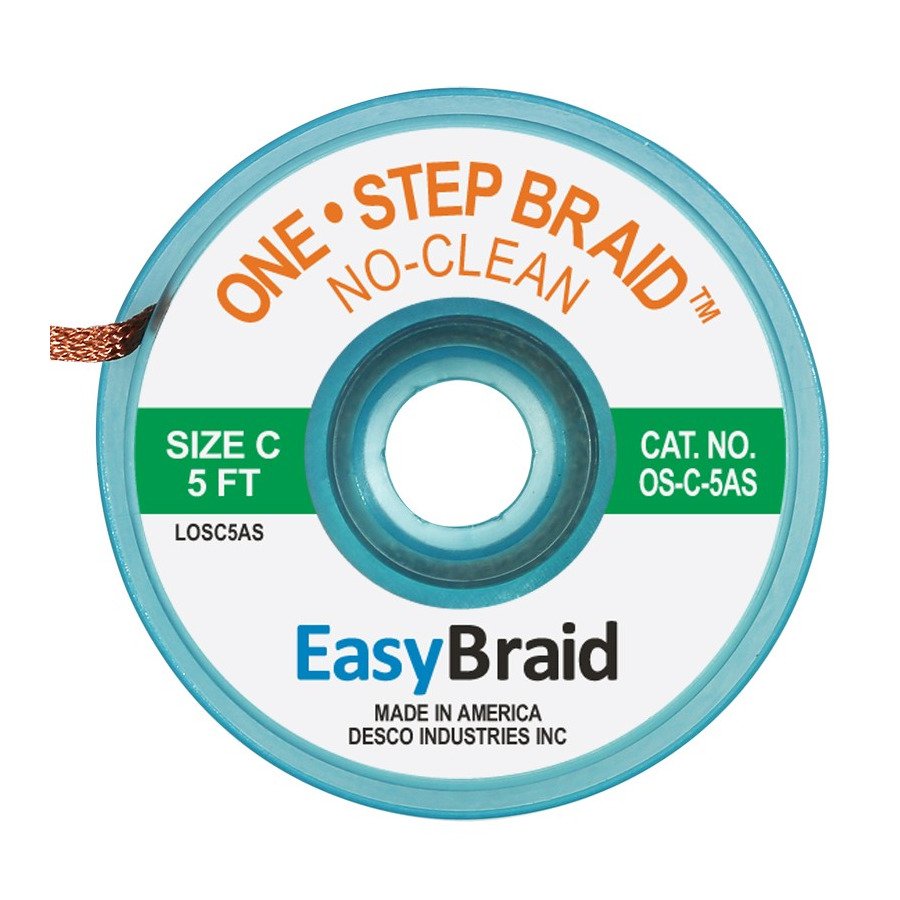 Easy Braid OS-C-5AS Solder Wick, No-Clean, 0.075″ x 5 ft, Size C, Green Label.