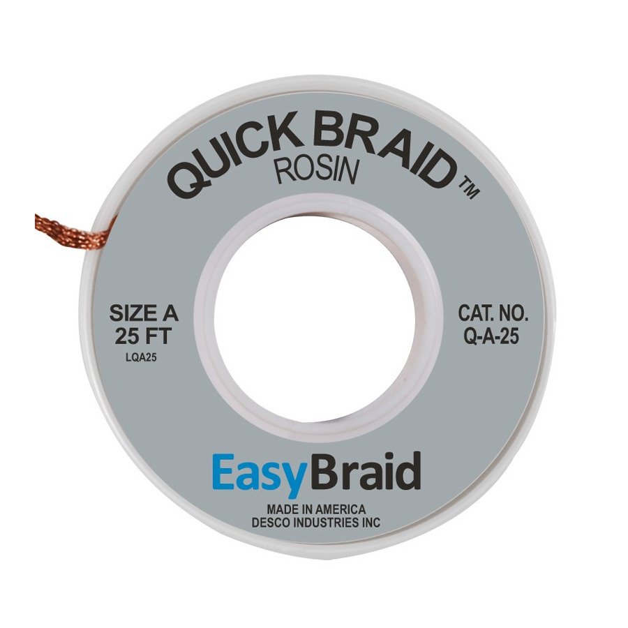 Easy Braid Q-A-25 Solder Wick, Rosin, No-Clean, 0.025″ x 25 ft, Size A, Gray Label.