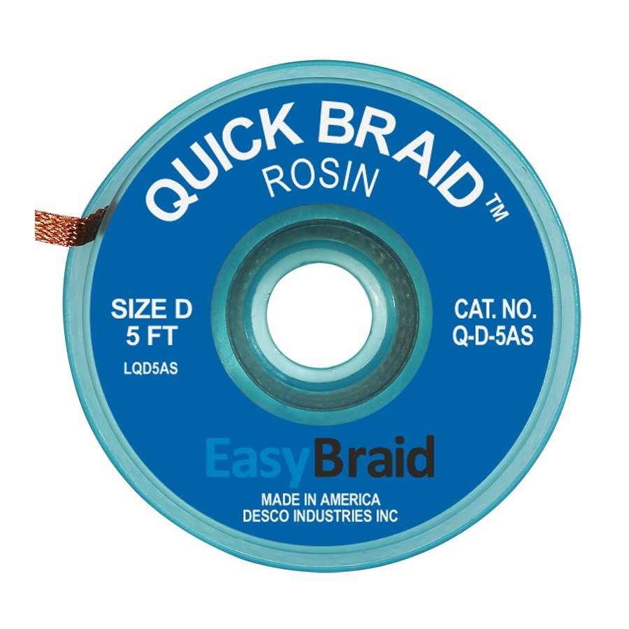 Easy Braid Q-D-5AS Solder Wick, Rosin, 0.100″ x 5 ft, Size D, Blue Label.
