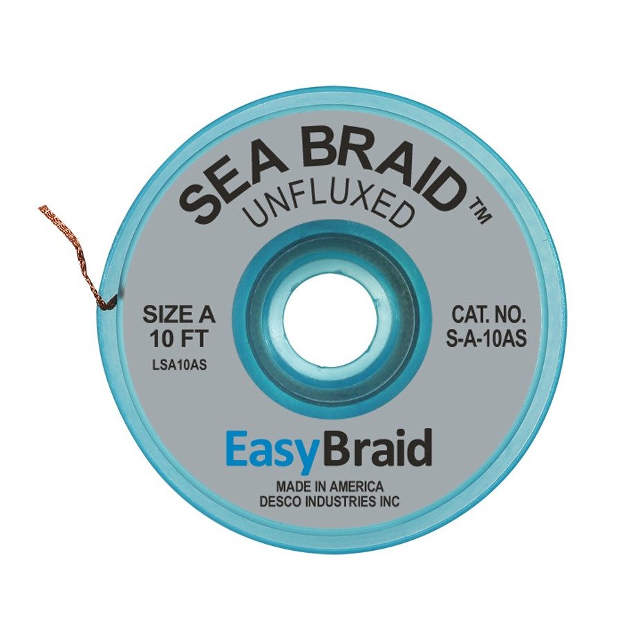 Solder Wick, Sea Braid, Unfluxed, 0.025″ x 10 ft, Size A, Gray Label
