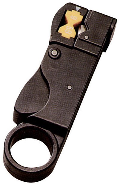 Quickly and efficiently, the Coax stripper removes the Outer sheath of the cable with it’s three blades. The blades can be replaced once worn down and are easily adjusted to fit the users’ needs.