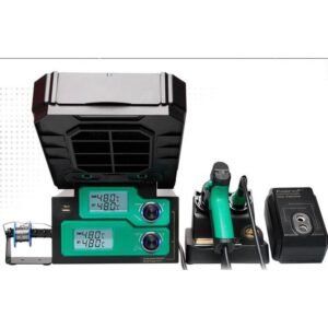 • Soldering and desoldering station with soldering iron and desoldering gun