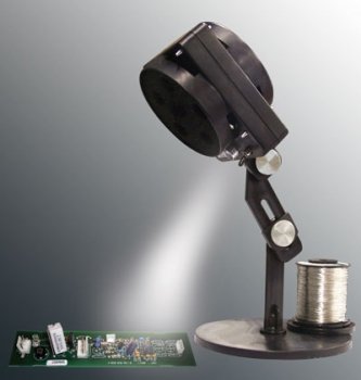 The EDSYN FXF11-1 Static-Safe FUMINATOR Benchtop Fume Extractor with the task light and solder spool holder does not include the transformer. This powerful benchtop fume extraction system provides ultra-quiet and compact two-stage charcoal impregnated filtration. The proprietary FUMINATOR ROTAFILTER system draws fume away from the operator and provides filtration 8 times better than a stationary filter. The task light is useful when working on small applications and reduces eyestrain. If the light is not needed a light diffuser has been included. The dual adjustments arm with large grey adjustment knobs has been provided for easier positioning and more targeted fume removal.