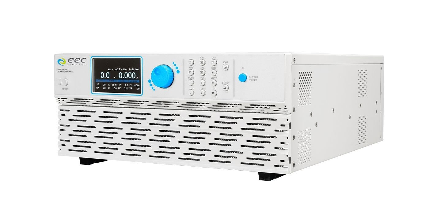 The EEC 8500 Series is the most power-dense and functionality-rich power source in our history, giving you improved capability, functionality, and a reduced footprint all in one series. This series is manufactured for simulating common grid faults, voltage dips, and other power abnormalities. The 8500 Series provides an output voltage of up to 310 VAC and an output frequency ranging from 5 Hz – 1,200 Hz making it the obvious solution for all kinds of applications. Not to mention, an enhanced interface to all models is completely designed with the end user in mind. Our 8500 Sources can be configured as a simple AC Power Source in Standard mode or, as an upgraded option, in Programmable mode. The programmable mode adds the benefits of a sweep of voltage, frequencies, transients, and DC bias over the course of a single sequence or several different tests. The 8500 Series includes the following models: 8505, 8512, 8520, 8530, 8540, & 8560.