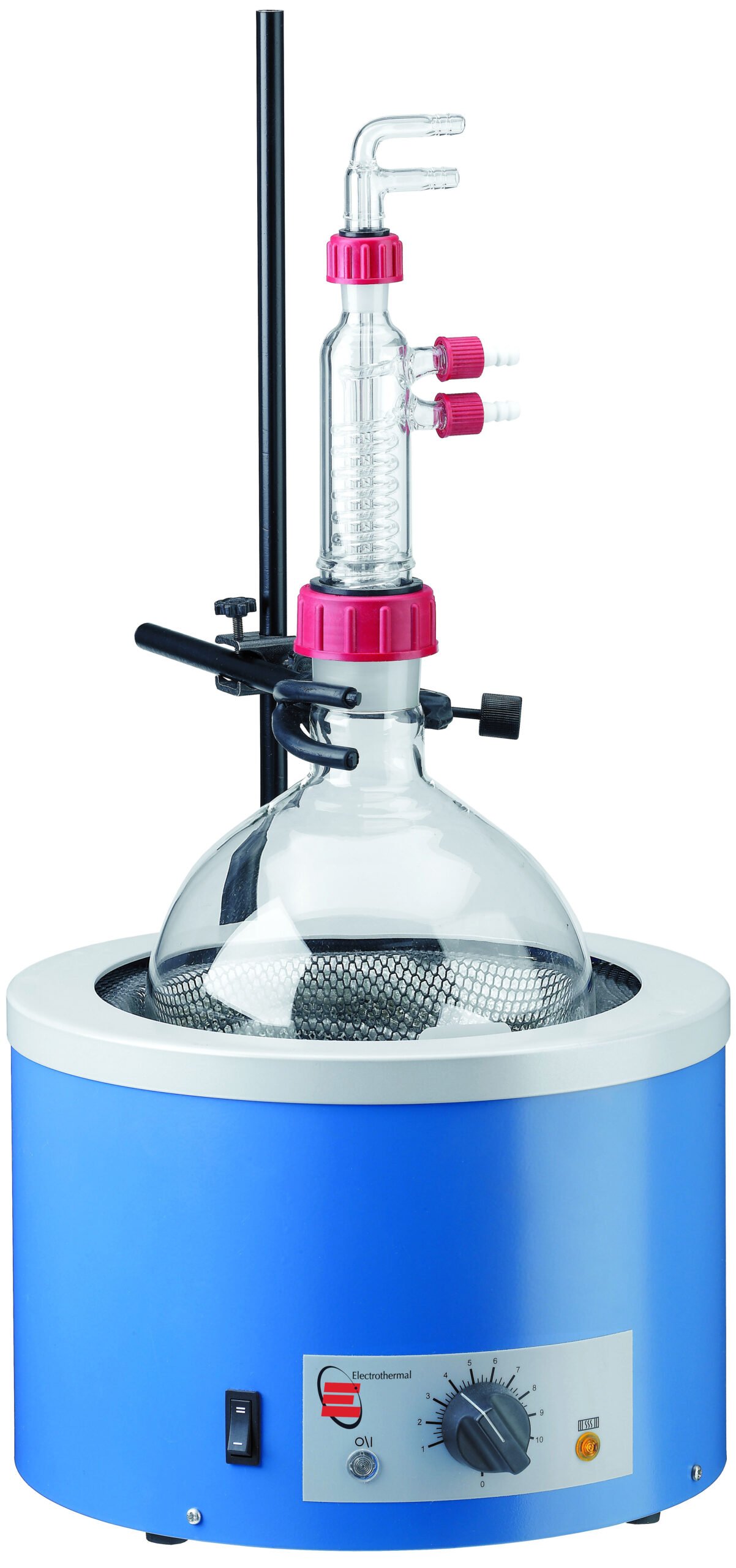 The Electrothermal series of heating mantles have been specifically designed to provide a comprehensive answer to heating fluids in round bottom flasks in the modern laboratory. The original “Electromantles” revolutionized round bottom flask heating by incorporating a coiled flexible heating element, which ingeniously wraps the heater around the flask to optimize heat transfer. For maximum safety, the flask is held away from direct contact with the heating element via a grounded earth screen. This design principle has stood the test of time and has been imitated the world over. With many years of experience, Electrothermal remains at the forefront of laboratory heating and its associated controlling technology.