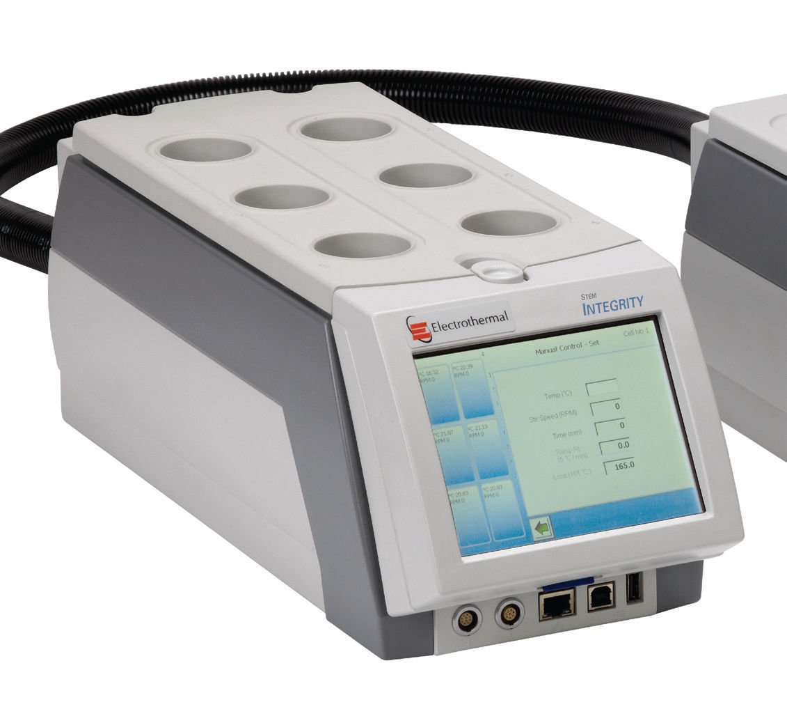 This accuracy can be maintained over a wide temperature range of -30°C to 150°C, with precise, independently controlled temperature profiles, and homogeneous sample mixing may be assured with stirring rates of between 350rpm to 1200rpm using powerful magnetic stirrers.