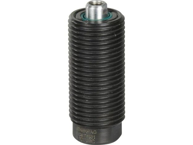 The Enerpac CST10192 is a hydraulic cylinder with a threaded body that offers a capacity of 11.3 kN and a stroke of 19 mm. This single-acting cylinder is used to simplify hydraulic tubing requirements. The minimum cylinder diameter is combined with maximized clamping forces. The threaded body allows fine positioning and easy installation, while the internal plunger wipers allow maintenance-free, high-cycle performance. The center-tapped plungers will hold the workpiece contact buttons.