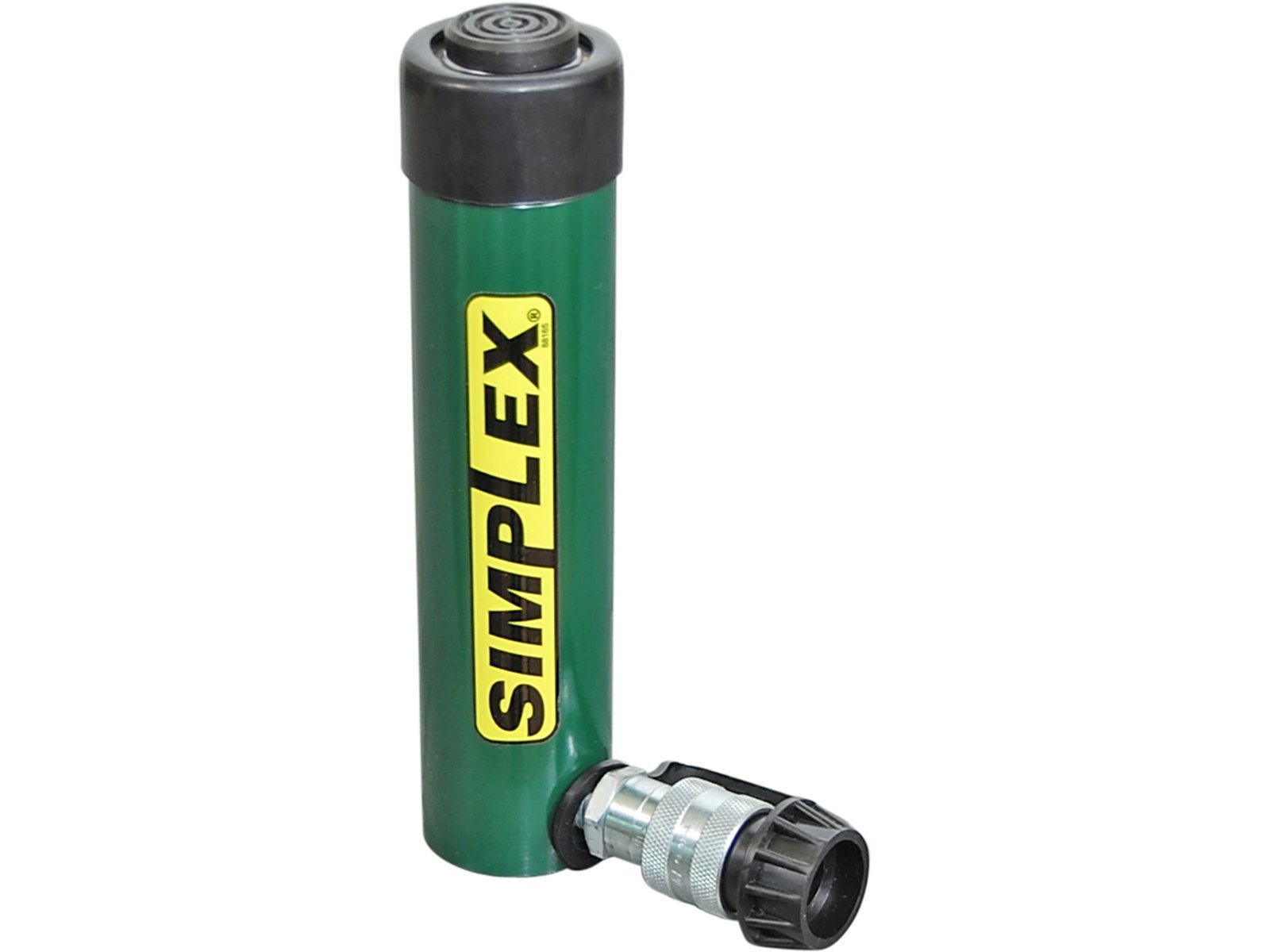 The Enerpac R106 is a general-purpose hydraulic cylinder with a 10-ton capacity, a 6″ stroke, and a single-acting spring return. It features an HD internal spring for fast retract assistance, and the heat-treated load caps are standard. This cylinder has a stop ring for piston blow-out protection. The plated piston resists scoring and corrosion. The high-flow couplers are plated to resist corrosion. This cylinder also comes with a rod wiper to protect the inner cylinder from dirt.