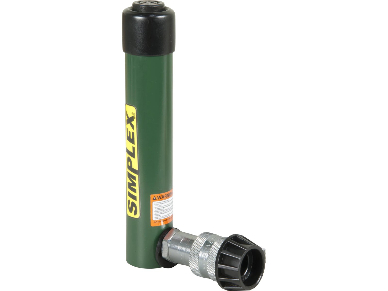 The Enerpac R55 is a general-purpose hydraulic cylinder with a 5-ton capacity, a 5.13″ stroke, and a single-acting spring return. It features an HD internal spring for fast retract assistance, and the heat-treated load caps are standard. This cylinder has a stop ring for piston blow-out protection. The plated piston resists scoring and corrosion. The high flow couplers are plated to resist corrosion. This cylinder also comes with a rod wiper to protect the inner cylinder from dirt.
