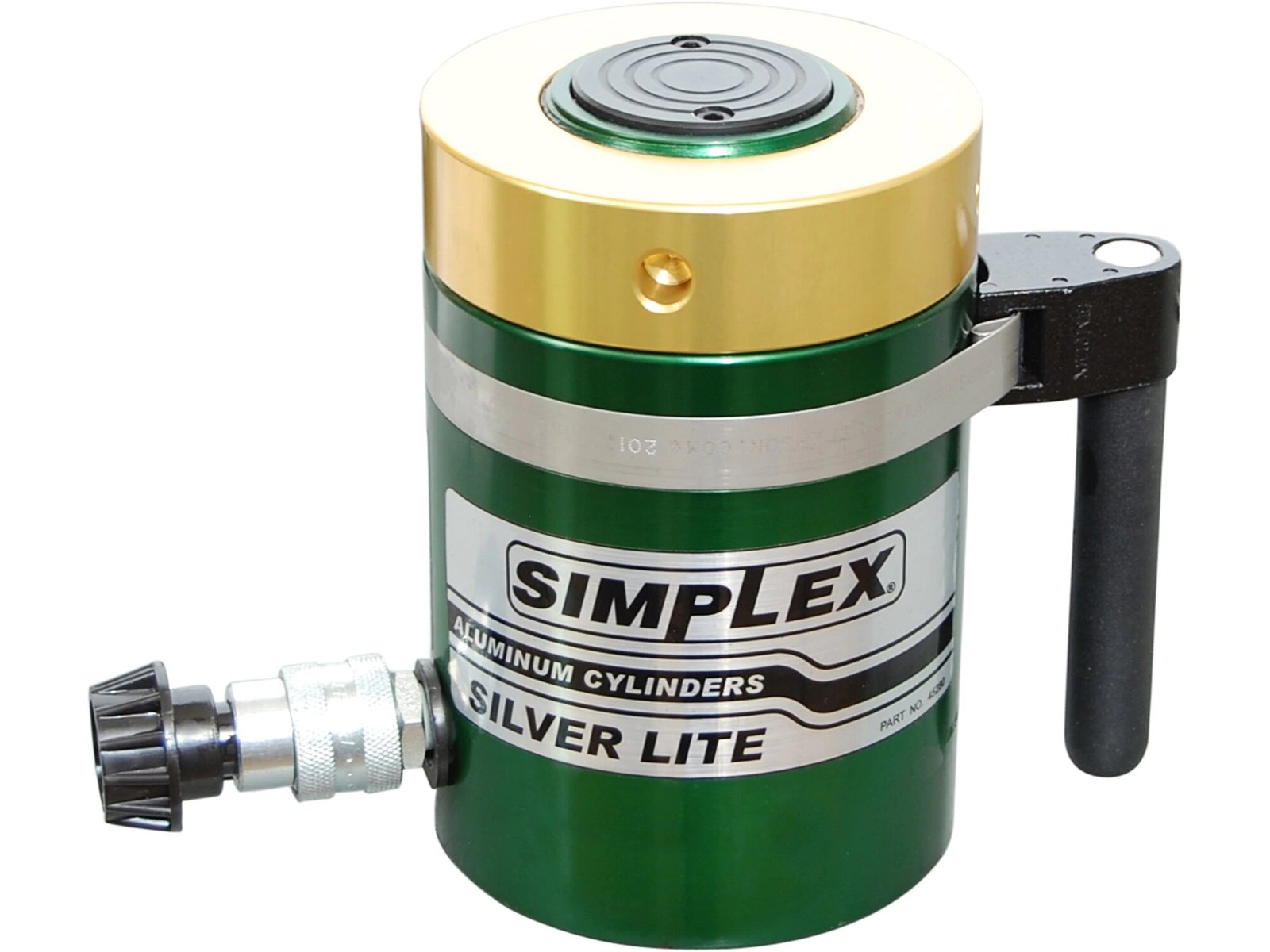 The Enerpac RAL502 is an aluminum locknut hydraulic cylinder with a 50-ton capacity, a 2″ stroke, and a single-acting spring return. It has a technical coating that reduces wear and corrosion and is half the weight of steel cylinders. The locknut offers extended load holding and stops rings for piston blowout protection. This cylinder comes with carrying handles and a heavy-duty spring for fast and full retraction.