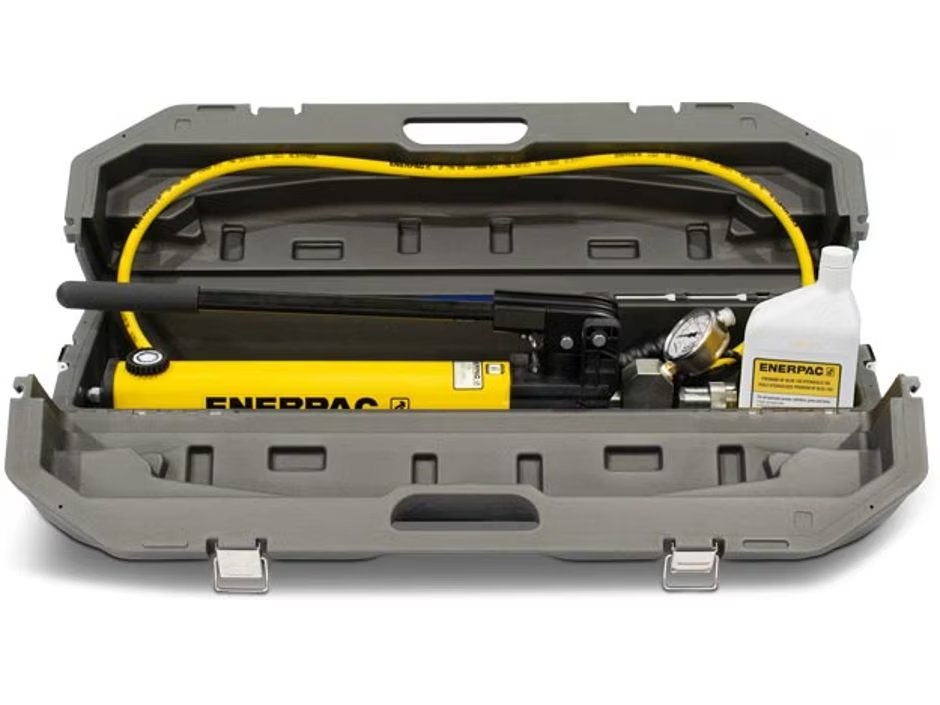 The Enerpac SC00HTB is a lightweight hydraulic hand pump and system components toolbox set. It has the option to upgrade to a complete hydraulic solution. It will work effortlessly with all the Enerpac tools. It is convenient and portable. This set comes in a durable, easy-to-carry box. The Flex Toolbox Set provides a convenient way to upgrade a tool to a complete hydraulic system.