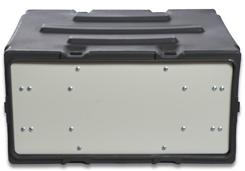 - Rugged plastic and aluminum enclosure with removable protective lids