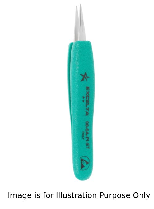 The Excelta 00-SA-PI-ET2 straight medium-pointed 5” long tweezer is the most popular general-purpose tweezer used without magnification. It is made of anti-magnetic stainless steel. It features our Ergo-Tweeze soft cushioned Anti-Static grips (10¹⁰ ohms/sq surface resistivity), which also protect the user from heat, with a 1.1” diameter between fingers for maximum level ergonomics.