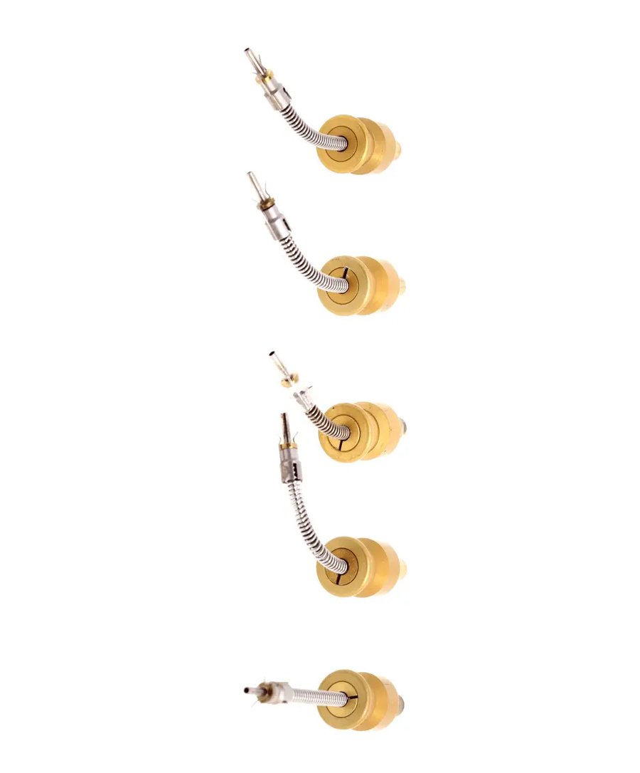 The Excelta 2000P Roto-pic™ vacuum probe kit contains one each of the 2020 (40°), 2021 (60°), 2022 (45° Short tip), 2023 (90° Tip), and 2024 (straight tip). These probes allow the tips to be rotated by operating the ‘wheel’ on the hand piece.