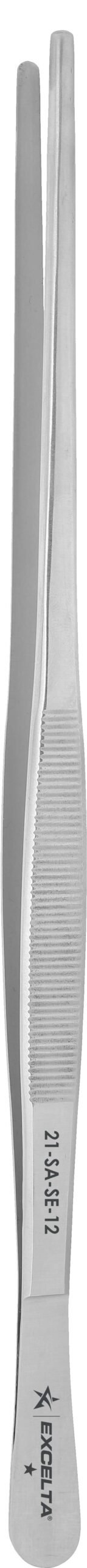 The Excelta 21-SA-SE-12 straight strong serrated tipped tweezer is ideal for general applications. It is made of anti-magnetic stainless steel and has serrated grips for better control. The overall length is 12”.