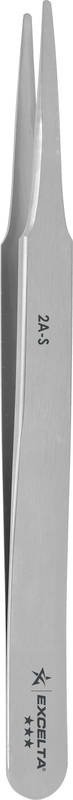 The Excelta 2A-S straight-tapered flat-pointed tweezers are designed for handling labels or SMD components. The overall length is 4.75″ and it is made of stainless steel. The tips measure .059″ wide by .008″ high.