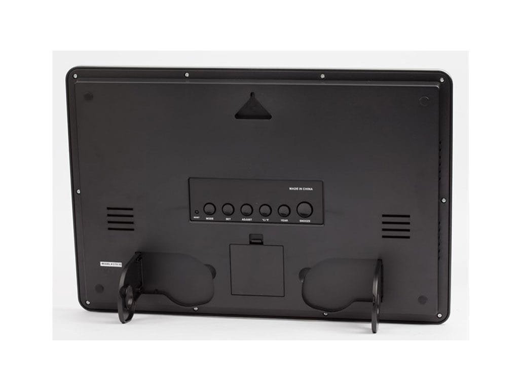 - Large LCD displays Time, RH%, Temperature, Year, Month, Date, and Day