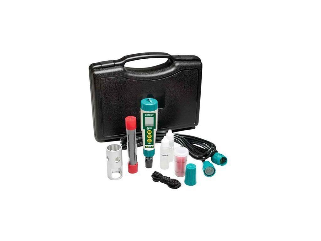 Extech DO600-K is a Waterproof ExStik® II Dissolved Oxygen Meter Kit with DO600, replacement membrane kit, and 16ft (5m) extension cable with probe guard. It simultaneously displays dissolved oxygen and temperature. Units of measure are % saturation, mg/l or ppm for dissolved oxygen,and °C or °F for automatic temperature compensation, slinity and altitude compensation.