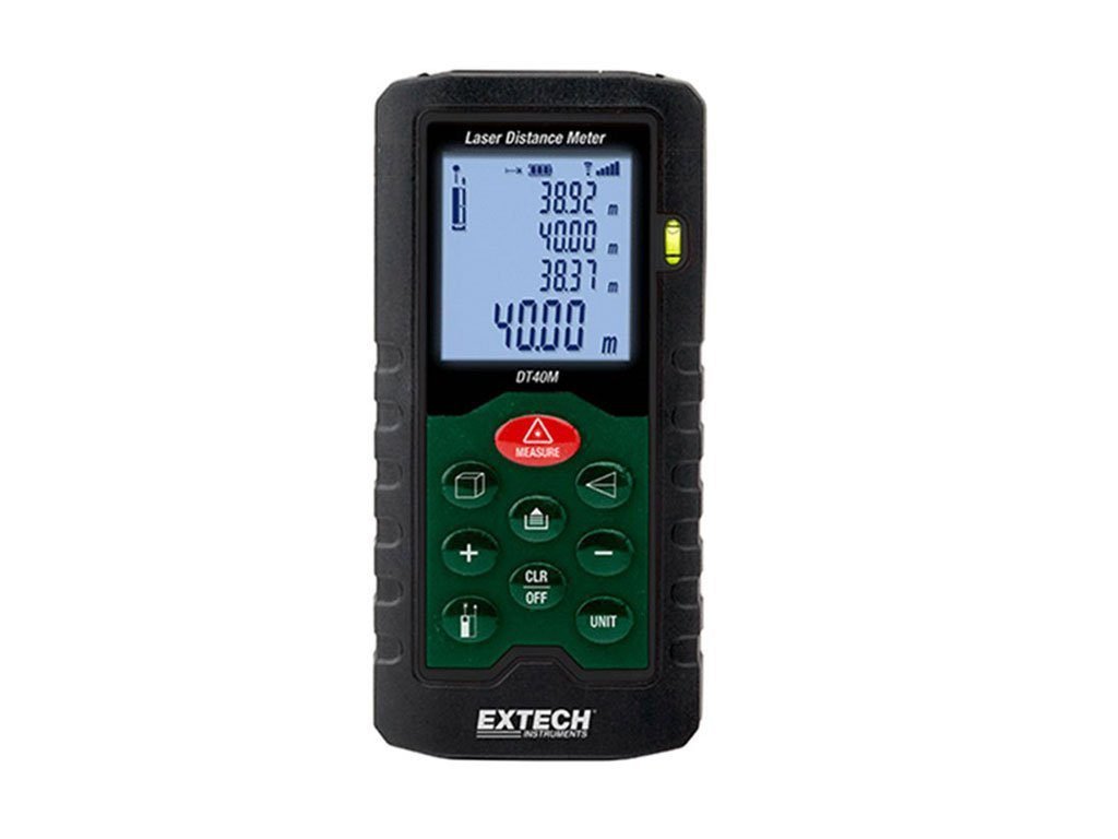 Extech’s Laser Distance Meters offer 3 models measuring distance up to 131ft (40m), 196ft (60m), or 330ft (100m). They can calculate area and volume and the integrated Pythagorean Theorem allows the user to take indirect measurements. Other features include continuous measurement with Min/Max distance tracking, 20 point memory, addition/subtraction of sequential readings, front or rear edge reference, and a Stakeout function. This DT series is designed with a large quad backlit LCD display and double molded housing. It also has a handy built-in bubble level and comes with a wrist strap and batteries.