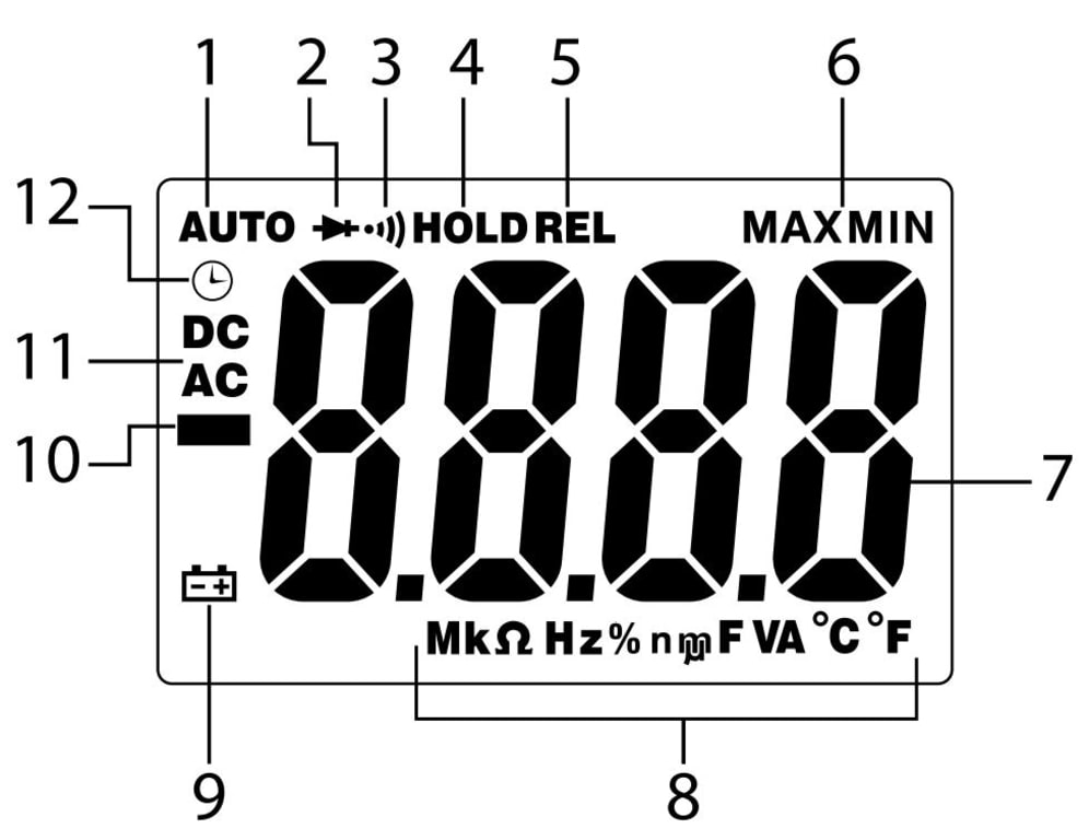 | 6. Maximum & Minimum reading mode | 12. APO enabled |