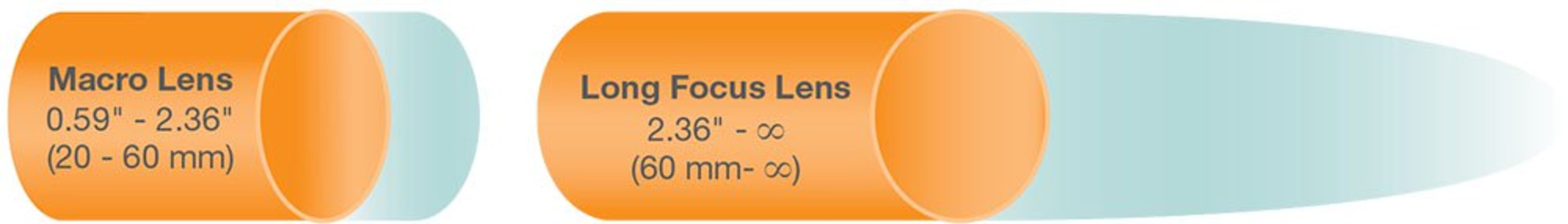 Macro (Short Focal Length) Lenses permit you to examine features and attributes that are up-close to the optical camera tip as illustrated above. For detail-intensive applications, such as turbine blade or boiler tube inspections, where up-close viewing is essential, select a macro tip with a diameter that is compatible with the width of access points or orifices available.