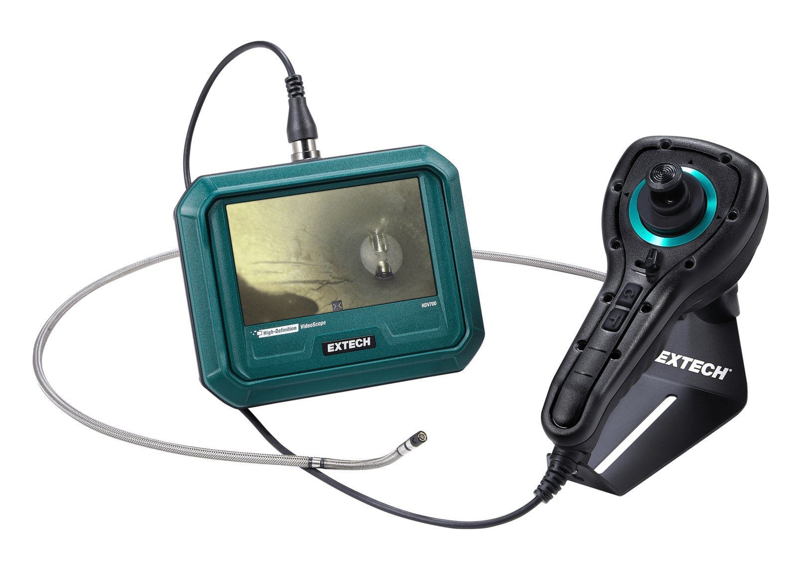 4-way 110-degree articulation camera. Flexible, stainless-steel mesh with 6mm diameter and 3m in length. For use with Extech HDV700 videoscope screen.