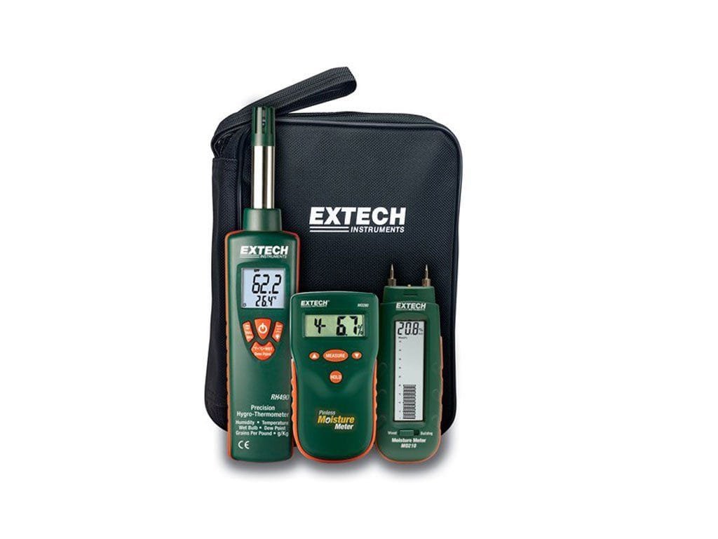 The MO280-KW is specifically designed for water damage restoration contractors. Monitor job site conditions, progress, and insurance company reporting. Kit includes an MO280 Pinless Moisture Meter that displays 0 to 99 percent moisture levels (select from 10 wood types) detected from a surface depth up to 0.75 inches with virtually no surface damage; a MO210 Pocket Moisture Meter that measures moisture in wood or other building materials and displays readings on a large dual graphical LCD with both digital readout and analog bargraph; and an RH490 Precision Hygro-Thermometer with 2 percent RH accuracy and fast 30-second RH response time. The RH490 measures Humidity, Temperature, Dew Point, Wet Bulb, GPP (grains per pound) and g/kg (grains per kilogram). Kit is supplied in a storage case that protects and organizes the testers whenever they are needed.