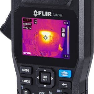 The FLIR CM276 Clamp Meter and Thermal Imaging Camera with METERLiNK reduces inspection and troubleshooting time for solar photovoltaic, electrical, and mechanical systems with its advanced thermal and visual camera. It features IGM (Infrared Guided Measurement) for safer non-contact thermal inspections and has advanced connectivity and analysis through the METERLiNK app.