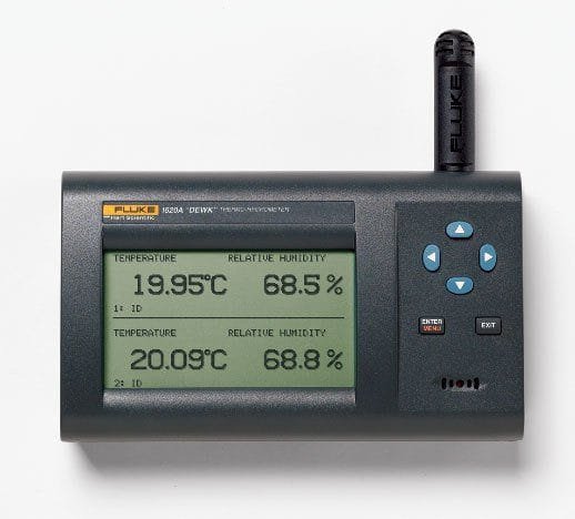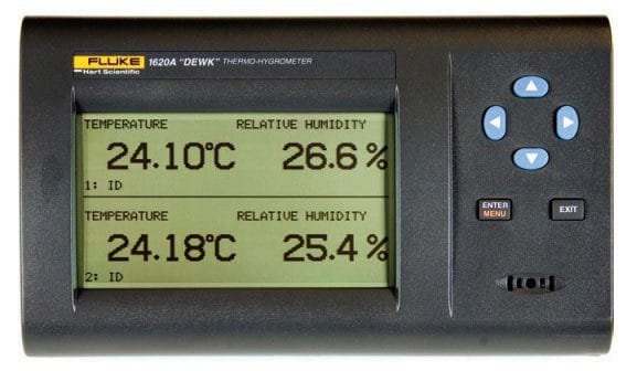 Each sensor is calibrated for both temperature and humidity by Fluke Calibration. The calibration constants assigned to the sensors reside in a memory chip located inside the sensor housing, so sensors may be used interchangeably between different DewKs, and the recalibration of sensors doesn’t require an accompanying DewK.