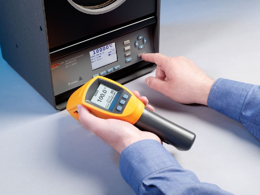 The 4180 Infrared Temperature Calibrator reaches temperatures from –15 °C to 120 °C and the 4181 Infrared Temperature Calibrator has a temperature range from 35 °C to 500 °C. Uniformity is important in infrared temperature calibration work because an infrared thermometer will “see” as much as the entire target when placed at the appropriate calibration distance.