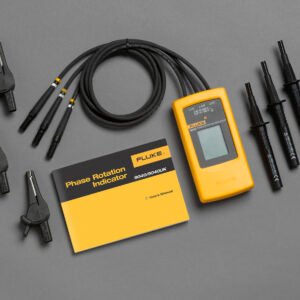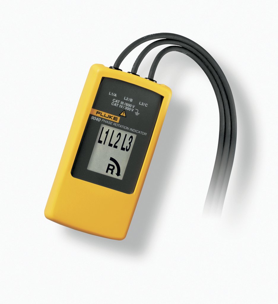 The Fluke 9040 is effective for measuring phase rotation in all areas where three phase supplies are used to feed motors, drives and electrical systems. The Fluke 9040 is a rotary field indicator and can provide clear indication of the 3 phase via an LCD display and the phase rotation direction to determine correct connections. It allows rapid determination of phase sequence and has a voltage (up to 700 V) and frequency range suitable for commercial and industrial applications. The included test probes have a variable clamping range for safe contact, also in industrial sockets.