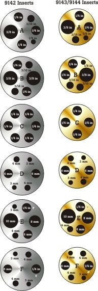 - Insert “F” 9144, Metric Comparison Misc Holes w/0.25-inch Hole
