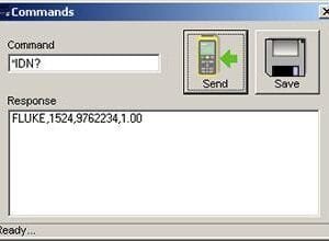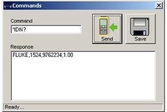 The Commands dialog is similar to other terminal programs. Type supported serial communication commands in the Command box. Click the Send button to send the command to the instrument. Responses received from the instrument are displayed in the Response box.