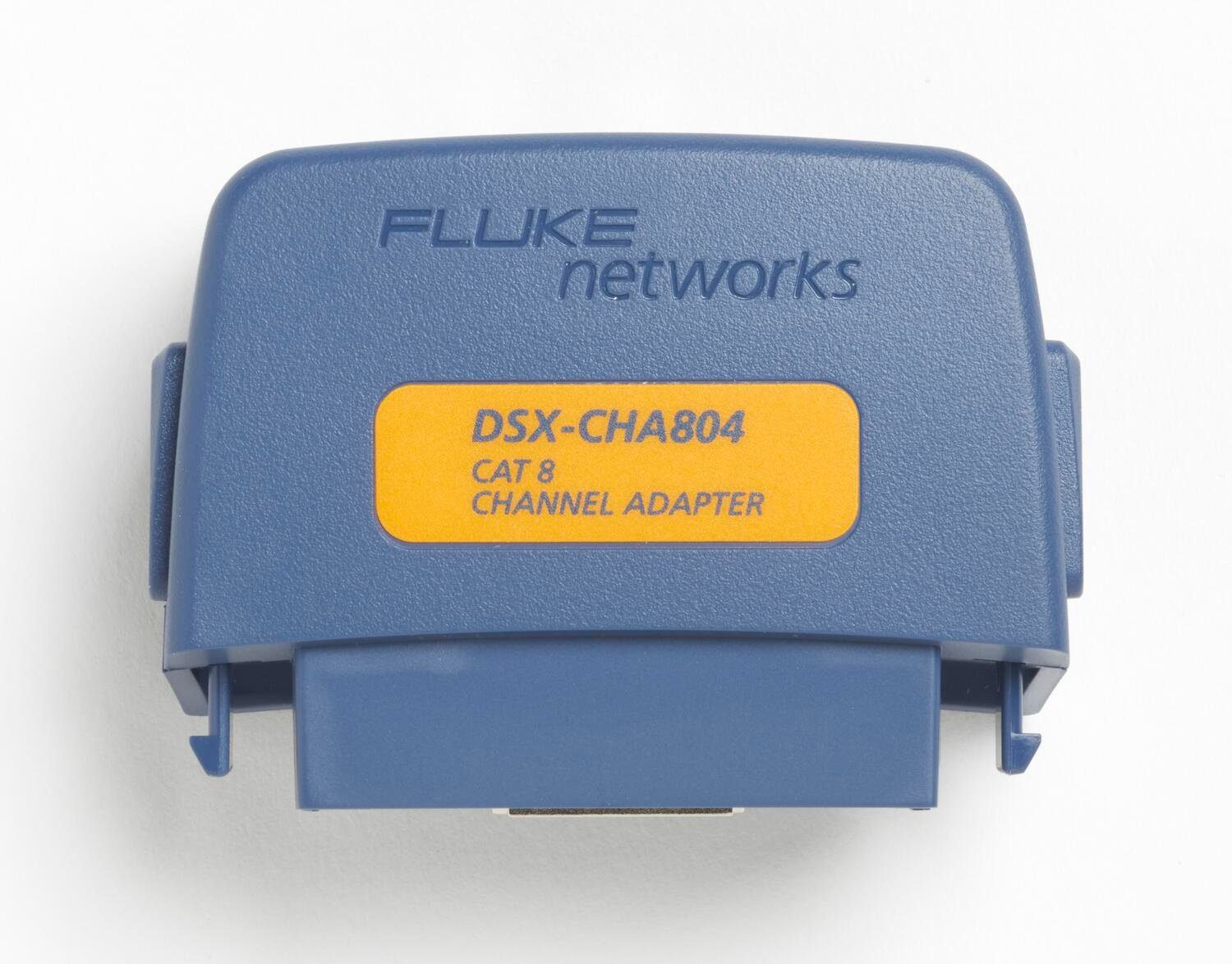 The DSX-CHA804 is a channel adapter with RJ45 connector. The adapters are for use with Fluke Networks DSX2-8000 CableAnalyzer modules. These adapters let you test and certify installed permanent links (link adapters sold separately) and channels to ANSI/TIA/EIA Cat 8/ISO Class I standards and verify that links will support 40GBASE-T Ethernet applications.