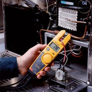 The Fluke T5 Electrical Testers let you check voltage, continuity and current with one compact tool. With the T5, all you have to do is select volts, ohms, or current and the tester does the rest. OpenJaw™ current lets you check current up to 100A – without breaking the circuit. Its tough test leads stow neatly in the back of the t ester, making it easy to tote the T5 in your tool pouch. Detachable SlimReach™ test probes are customized for national electrical standards. The test leads accept optional accessories such as clips and specialty probes. The optional H5 holster lets you clip the T5 onto your belt.