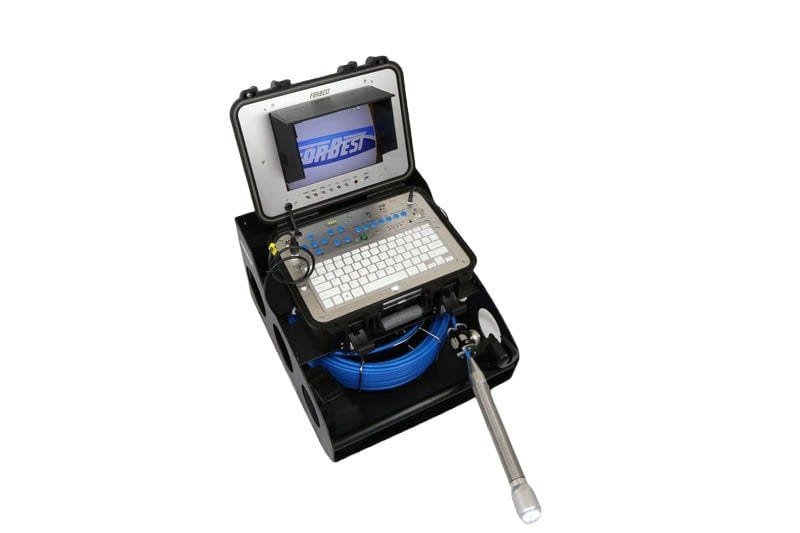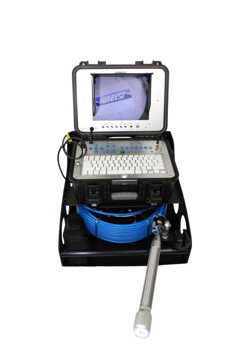 The Forbest 4188K C40 is a mid-range sewer camera with a multifunctional control station with a 10-inch LCD screen and keyboard for reporting, typing and editing. It is equipped with a 1.5-inch (40mm) C40 camera with self-leveling and built-in 512Hz Sonde transmitter that works with the 512Hz locator (sold separately) to pinpoint the exact distance in your reach, providing assurance when diagnosing an issue. The 8mm 130-ft cable with catch base reel and meter counter to gauge distance of the push cable allow the user to navigate easily through pipes 4- to 10-inches in diameter.