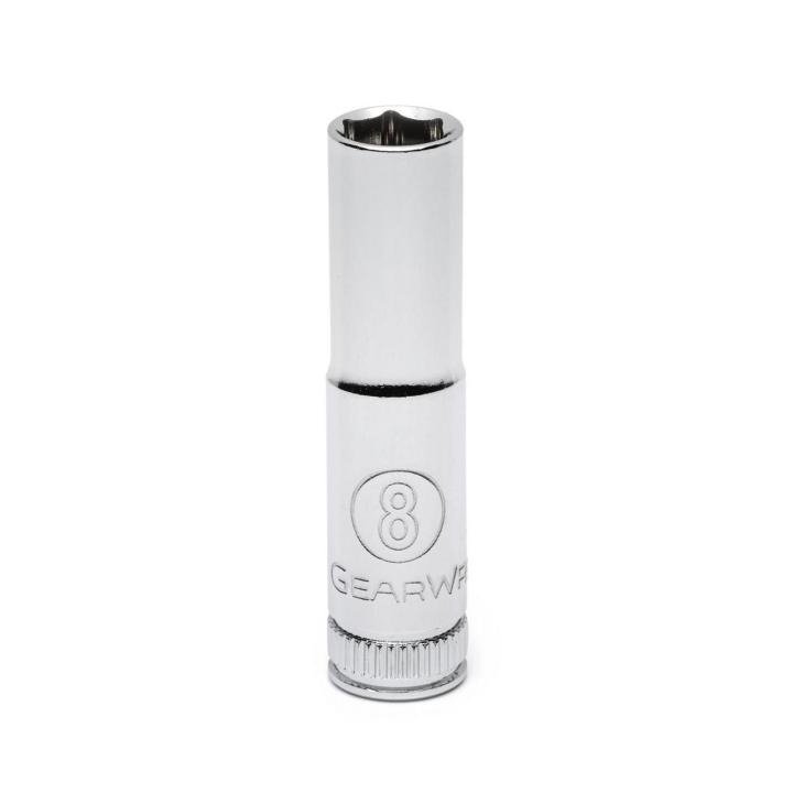 GEARWRENCH 80143 – Metric Socket, 1/4″ Drive, 6 Point, Deep, 8mm, Alloy Steel, Carded