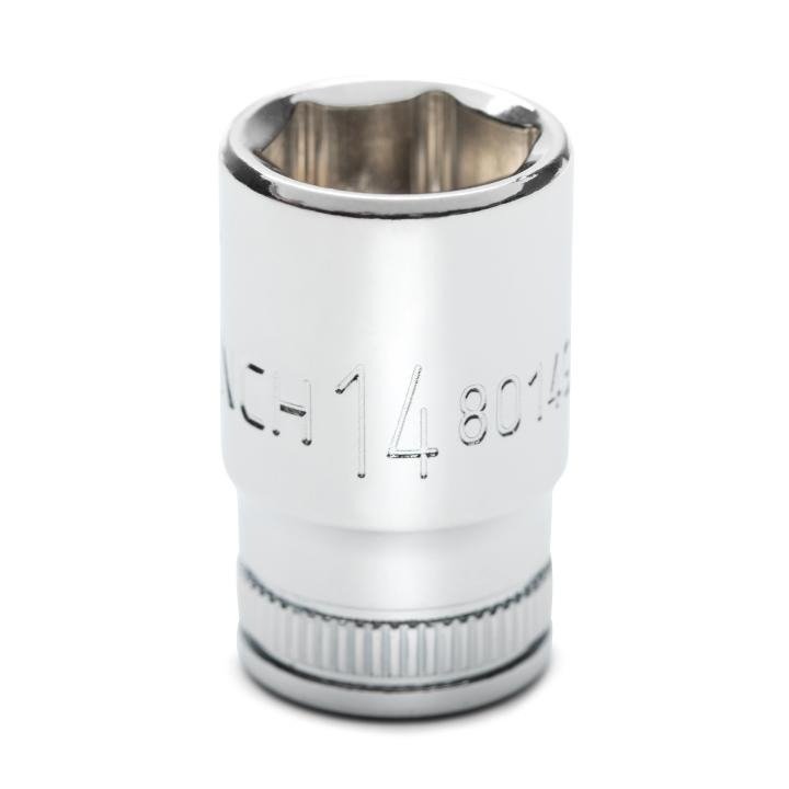 SAE Socket, 1/4″ Drive, 6 Point, Mid Length, 14mm, Alloy Steel, Carded