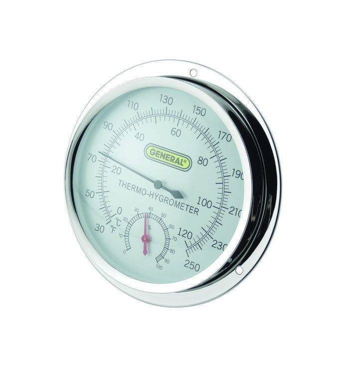 The General Tools A600FC High-Temperature Analog Humidity Temperature Meter is ideal for measuring and monitoring temperature and humidity. It has a 5-1/4 in. dial and can be easily wall-mounted.