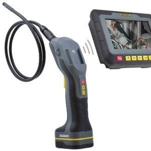 The General Tools DCS500 Video Borescope Wireless Recording is an advanced borescope camera with a detachable monitor for wireless transmission of video making it ideal for viewing hard to reach areas in buildings, vehicles and other equipment. The General tools DCS500 is IP54 Splash-proof, records through easy and intuitive “trigger” on pistol-style grip, includes PC software for video and image storage and analysis, and features a built-in microphone for voice annotations.