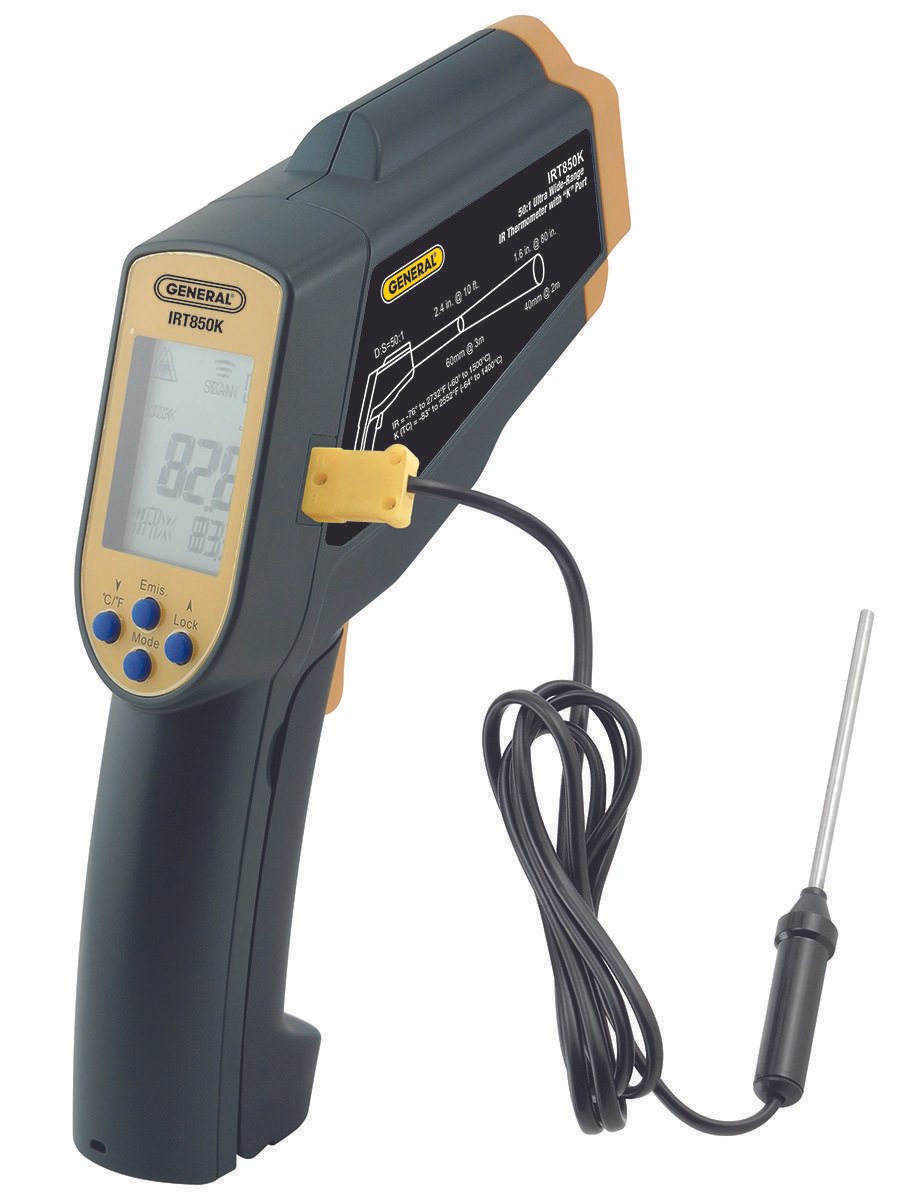 The #IRT850K laser thermometer has the optics needed to measure high temperatures safely—from a distance. It also has the features and measurement range needed for demanding industrial applications, including the operation and maintenance of furnaces and heat exchangers.