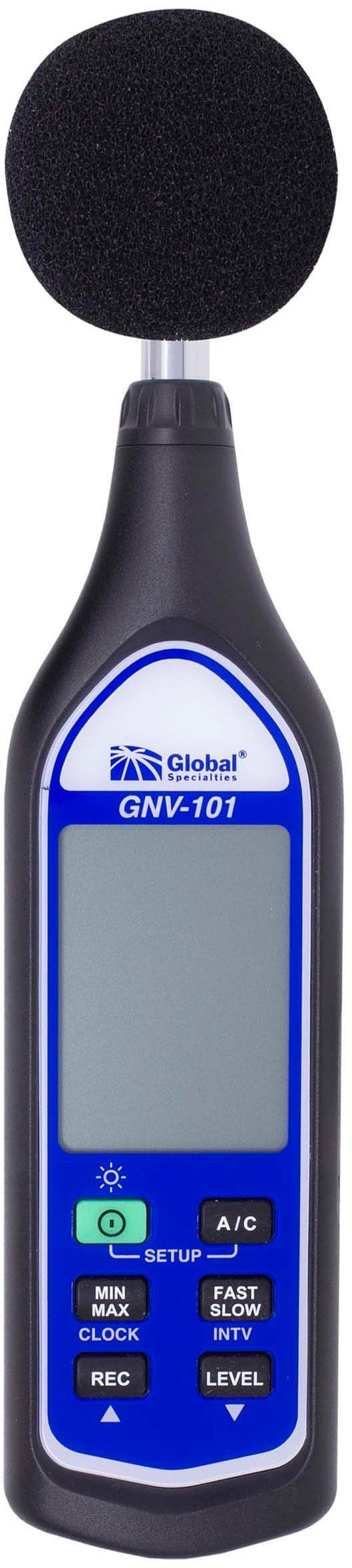 The Global Specialties GNV-101 Sound Level Meter is a portable sound level meter used to capture the dB level of one’s surrounding environment. The meter meets the IEC Class 2 requirements, which makes it ideal for sound hazard measurements. The handheld design also comes with a tripod mount for the option of hands-free use. Fast time sampling of one measurement every 125 ms combined with the wide dynamic range of 60 dB provides high detail output from the crisp LCD display. A USB port enables you to record data over extended periods of time and save them as a .csv file for use in Excel. One can also view the data in real-time, whilst connected to a compatible computer system.
