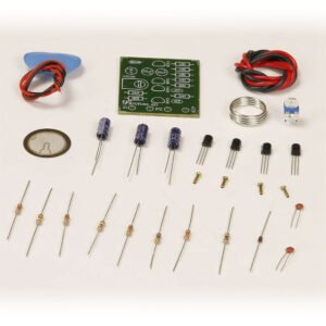 This circuit generates a 10-30 KHz frequency that creates a sonic zone disturbing to mosquitoes. A piezo board creates the frequency equal to the frequency generated by the mosquito during flight causing the mosquito to believe he/she is flying into a trap. This kit may be assembled without soldering on any Global Specialties trainer or breadboard (not included), or by soldering to the included PCB. Parts and assembly instructions included.