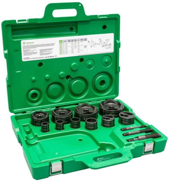 The Greenlee KCC4-767 is a Slug Buster Set (0.5 to 4″) for use with 746A ram and 767 hand pump hydraulic knockout drivers.