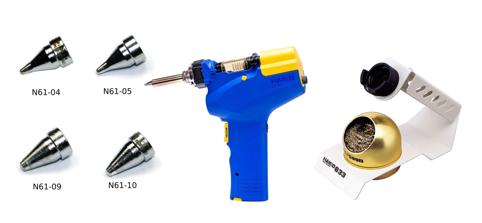 Portable Desoldering Tool with Four Extra Nozzles (N61-04, 05, 09 and 10) and 633-01 Stand