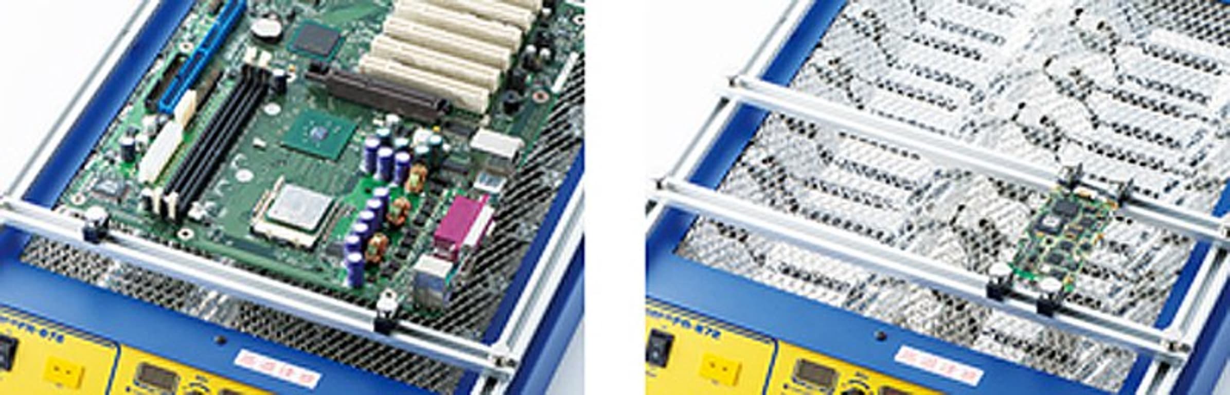 The heating area has been split into four zones that can be independently activated, making it possible to heat all of the board or only necessary areas when reworking large boards or to turn off unnecessary areas when reworking small boards.