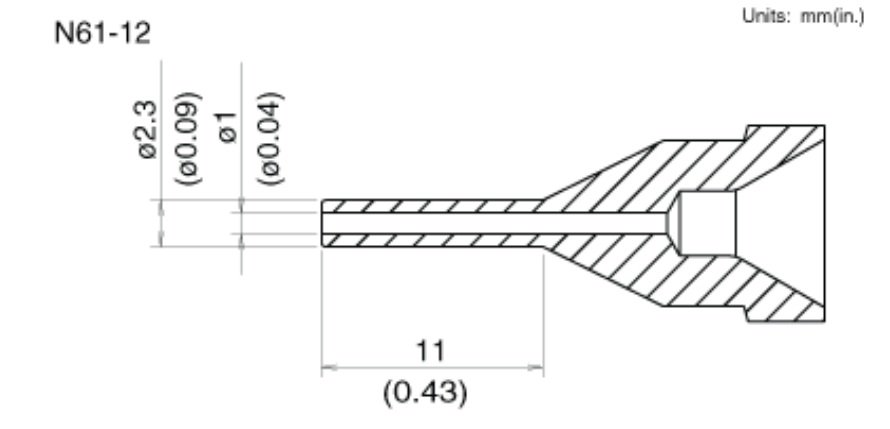 Hakko N61 nozzles are compatible with the FR-301 desoldering tool, as well as the FR-4101/4102 handpiece. The following is an overview of each. Please see the documents section on this page for a complete set of dimensional drawings.