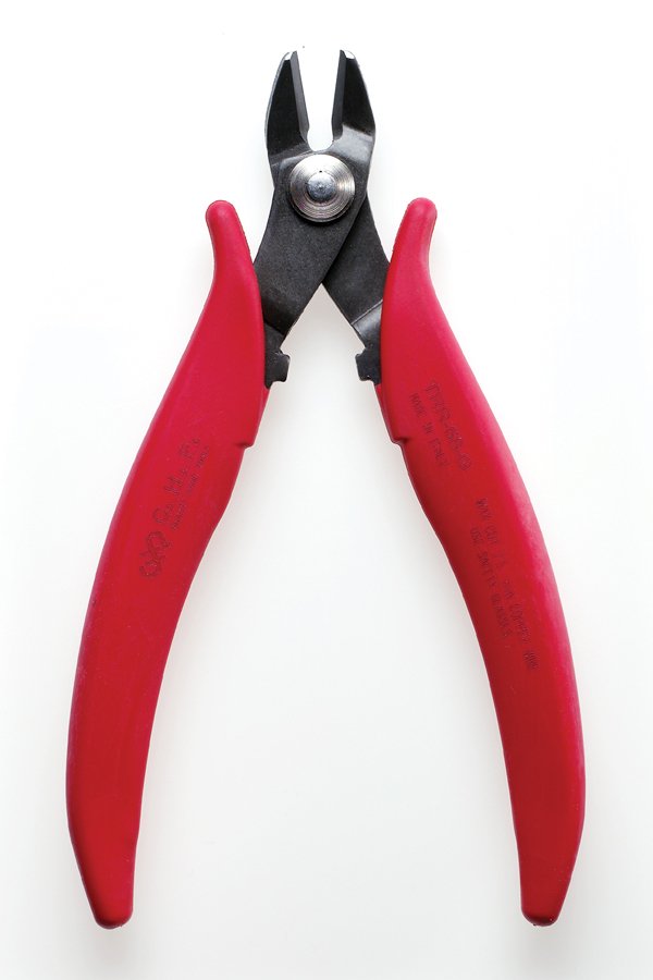 The Hakko TRR-58-G tool is a very strong flush cut tool with a wide head and long handles. Aside from work in electronics, goldsmiths use this tool to cut rubber seals.