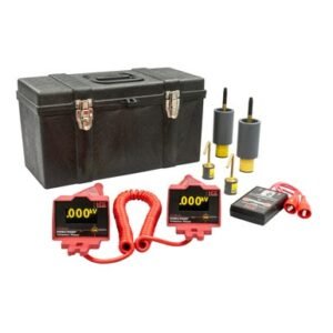 Dual Display Digital Voltmeter Kit Includes Ultra-light, high-strength molded housing Peak Hold mode Oversized, dual digital LED display One button operation for test modes Highly accurate, within 1% of the reading Dual battery monitor with auto shut off Measures AC and DC voltages Powered by two 9V lithium or alkaline batteries in an easy to change battery case – no tools required Dual hot-stick connections – universal spline and shotgun stick Capacitive Test Point mode.
