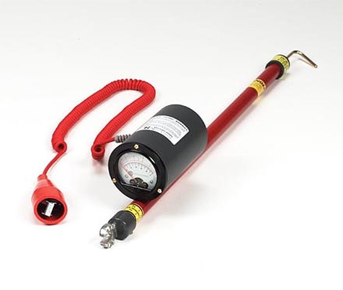 Accuracy 3% of full-scale Universal splines Rugged construction designed for heavy field use Overhead brass hook contact probes Large 3″(7.6 cm) meter face with a Lex, and protective cover is specially designed for easy reading and increased accuracy. Multiple scales assist the user in avoiding misreads. Strain relief fittings at the ends of cords reduce cable damage at the point of highest stress. High voltage resistors are encapsulated in epoxy in all resistor sticks, limiting maximum current to approximately one million amp at full rated voltage. Virtually maintenance-free – no batteries required. Measures DC through 1000HzAC RMS.